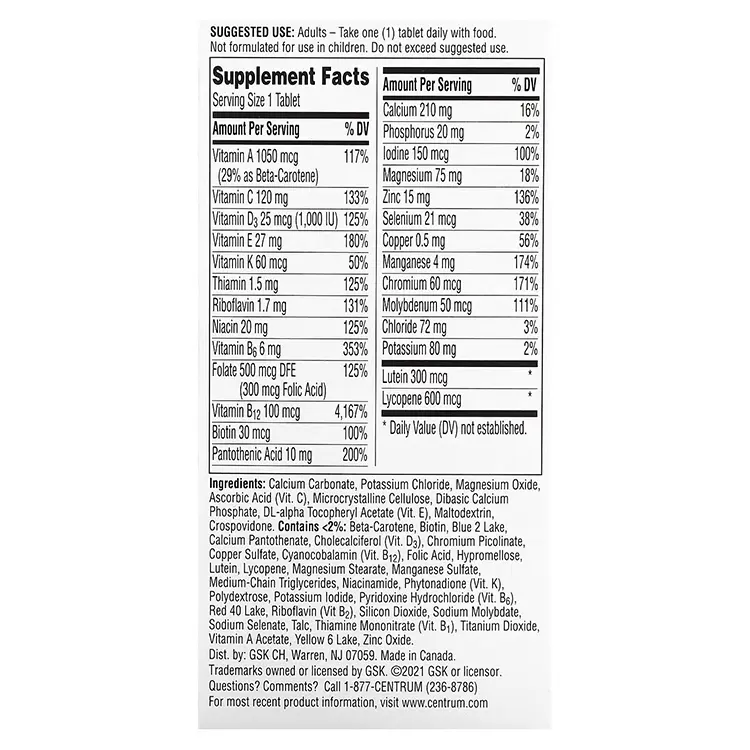 Mantener Centrum Silver Men 50+ 275 Tab en un lugar fresco y seco. Evita la exposición a la luz solar directa, la humedad y el calor excesivo, ya que estos factores pueden degradar el producto.
