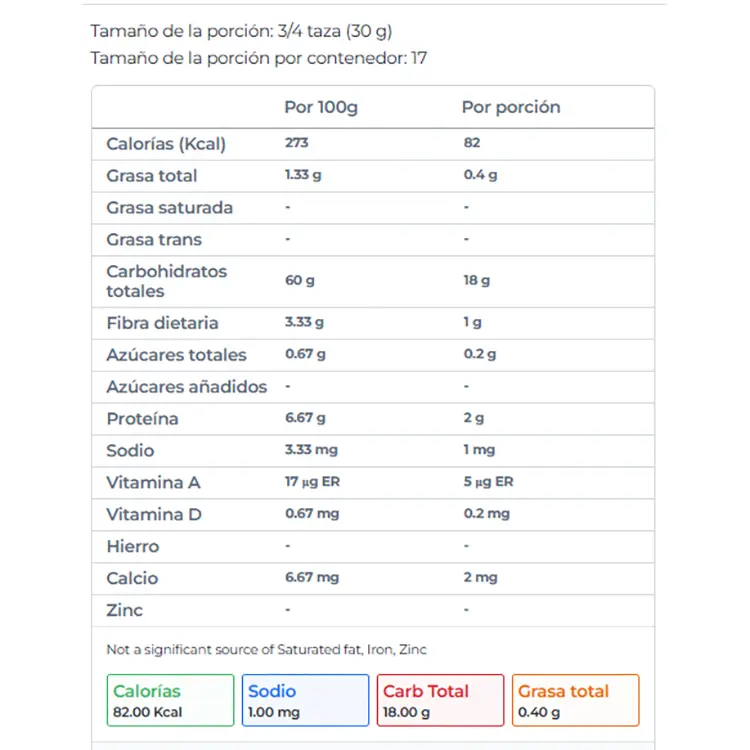 Alto en fibra: Tanto la quinua como el maíz contienen fibra dietética, que ayuda a mejorar la digestión, prevenir el estreñimiento y favorecer la salud intestinal.