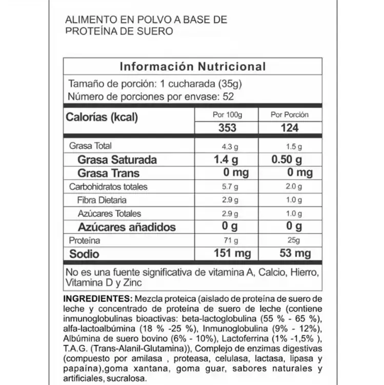 Disfruta una proteína diseñada para resultados reales: alta pureza, fácil digestión y sabores irresistibles. Protizyme combina proteína de alta biodisponibilidad con enzimas digestivas que mejoran la absorción, ayudan a construir músculo magro y aceleran la recuperación. Ideal para tonificar, bajar grasa o aumentar masa sin pesadez. ¡Nutrición inteligente, resultados visibles y un sabor que amarás desde el primer scoop!